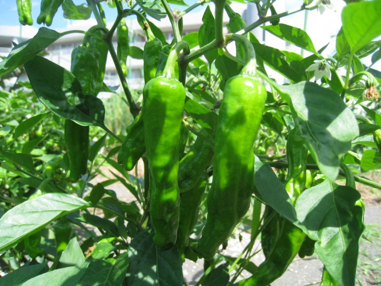 | 出勤して畑に行くと「ししとう」と「加茂茄子」が食べごろに成長していました。 今の季節は野菜の生長が早く、次から次と収穫時期を迎えます。南から台風が接近しているので倒れないように補強をしなければならないので大変です。 | ![]() | ![]() | |||