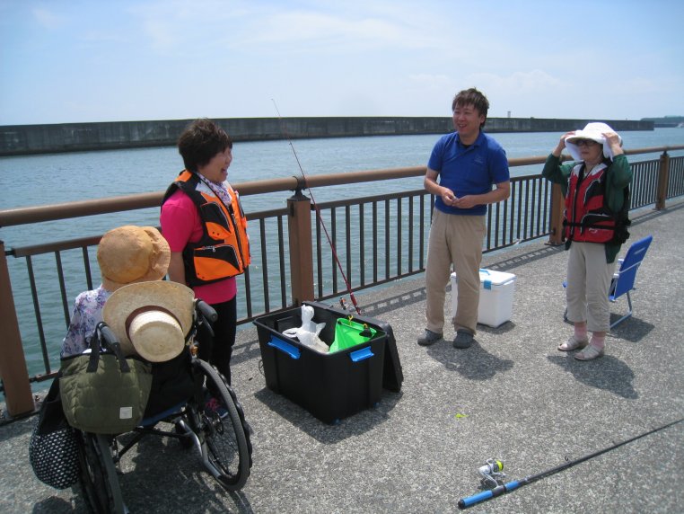 | 夏が目前に迫ってきました。 本日は機能訓練を目的とした外出で、NFCの活動報告です。海に到着して第1投、1分足らずで大きな当りがあり、引き寄せてみたら30cmくらいのマゴチでした。これは足元で外れてしまいましたが第2投でまたまたヒット。 利用者がエサ付けから投げるまで全てやります。 しかも上手。 | ![]() | ![]() | |||