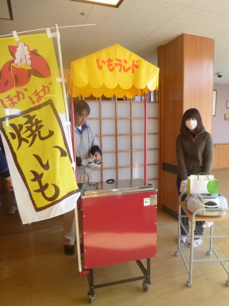 | 「いしや~きいも~♪おいも!おいも!おいもだよ~♪」本日、穏やかな日差しが差し込む廊下から、焼きたてのお芋の匂いと共に、誰もが一度は聴いたあの焼き芋のメロディーが!! 本日はなんと!なごみイチオシの焼き芋屋さんが3階に来てくれました。あつあつほくほくの焼き芋を利用者さん一人一人に、お手製の昔懐かしい新聞の包み紙に入れて、そっと手渡し。あつあつほくほくの焼き芋を手にした利用者さんは、、「甘くて美味しいねぇ」「あったかくなるねぇ」と大好評でした。 最後には、「また来てね~」とリクエストも頂き、利用者さんと一緒にほっこりした時間を過ごす事が出来ました。 また、皆さんの下に美味しい「焼き芋屋さん」が来ると良いですね。 | ![]() | ![]() | |||