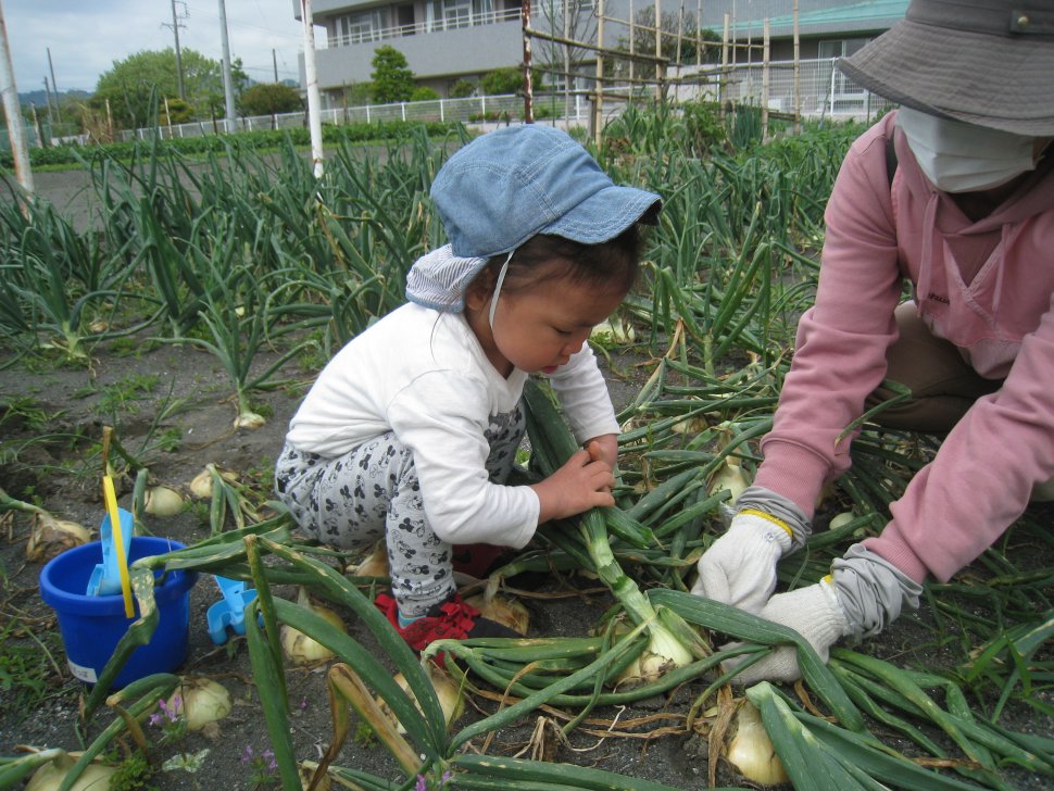 結構大きく育った玉ねぎ、KIDSの小さな手で収穫できるかな?